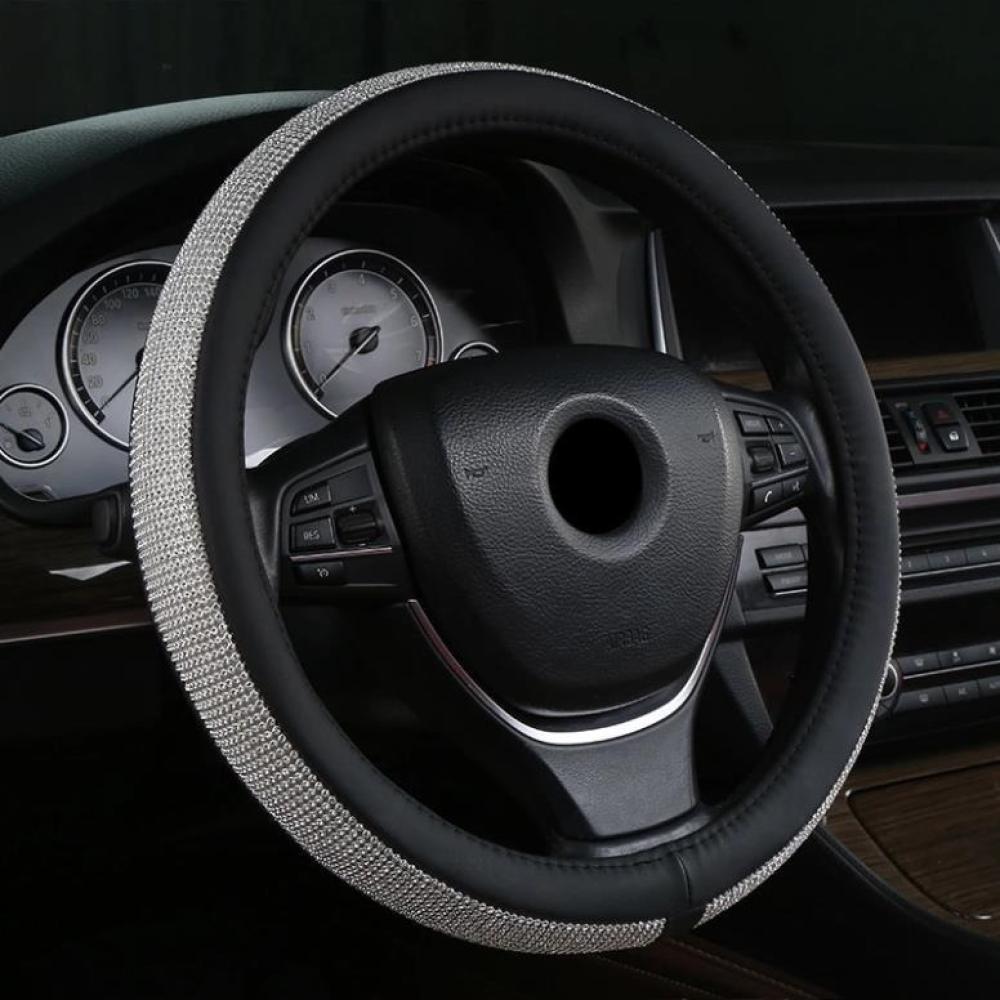 متوفر لدى متجر الفريدة غطاء راقي لعجلة القيادة بتصميم مميز وخامة عالية الجودة من ماركة QianYuan العالمية، مصنوع من الجلد اللامع المزين بأحجار الراين الكريستالية مما يضفي بريق ولمعان على عجلة القيادة. غطاء عجلة القيادة بتصميم عصري أنيق ومضاد للانزلاق مناسب عالميًا لمعظم السيارات، فهو ديكور مميز يبرز فخامة وأناقة سيارتك من الداخل. يعمل الغطاء على حماية مقود السيارة من الضرر ومن الزيوت والأوساخ وبصمات الأصابع، مع ضمان قبضة مناسبة للعجلة.